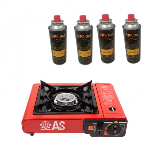 اجاق سفری مدل AS همراه 4 عدد کپسول گاز سفری