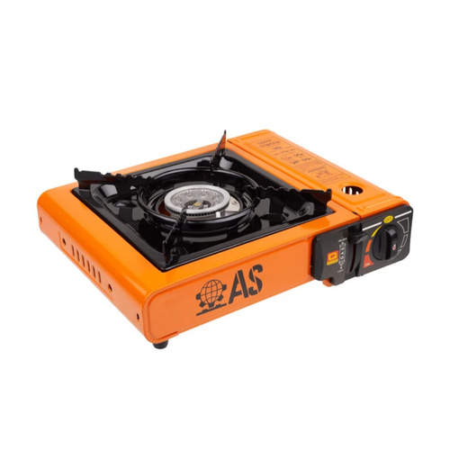اجاق گاز سفری AS مدل سامسونتی به همراه 4 عدد کپسول سوخت 210 گرمی اجاق مسافرتی یا قابل حمل بوده و جهت استفاده در فعالیت های کمپینگ ، کوهنوردی ، مسافرت و استفاده در باغ و ویلا گزینه ای بسیار ایده آل و کاربردی بشمار میآید، این اجاق گاز از نظر کارایی و کاربرد کاملا شبیه به اجاق گاز خانگی طراحی گردیده و علاوه بر کپسول های گاز استوانه ای سفری که حاوی گاز بوتان است ، به راحتی به انواع کپسول های مایع نیز متصل شده و قابل استفاده میباشد. اجاق گاز مسافرتی مدل AS مجهز به یک شعله پوش با قابلیت جداسازی است، این شعله پوش به صورت گسترده طراحی شده و تمام سطح ظروف پخت و پز را پوشش میدهد ، از دیگر ویژگی های مهم در اجاق مسافرتی AS مقاومت بالای آن در برابر نفوذ باد است ، این اجاق بر خلاف سایر اجاق های پیک نیک که شعله آنها در برابر باد به راحتی خاموش میشود ، از مقاومت بالایی در برابر باد برخوردار است و جهت استفاده در فضای باز کاربرد بسیاری دارد. اجاق گاز سفری مجهز به یک فندک سر خود بوده و توسط سیستم جرقه زنی الکترونیکی که در قسمت سر شعله تعبیه گردیده به راحتی روشن میگردد ، علاوه بر این مجهز به یک سنسور تشخیص فشار بوده که سبب افزایش ایمنی هنگام استفاده میشود همچنین مجهز به یک هاردکیس مستحکم و مخصوص بوده که علاوه بر راحتی هنگام حمل و نقل و جا به جایی در برابر ضربه نیز از اجاق گاز محافظت مینماید.
